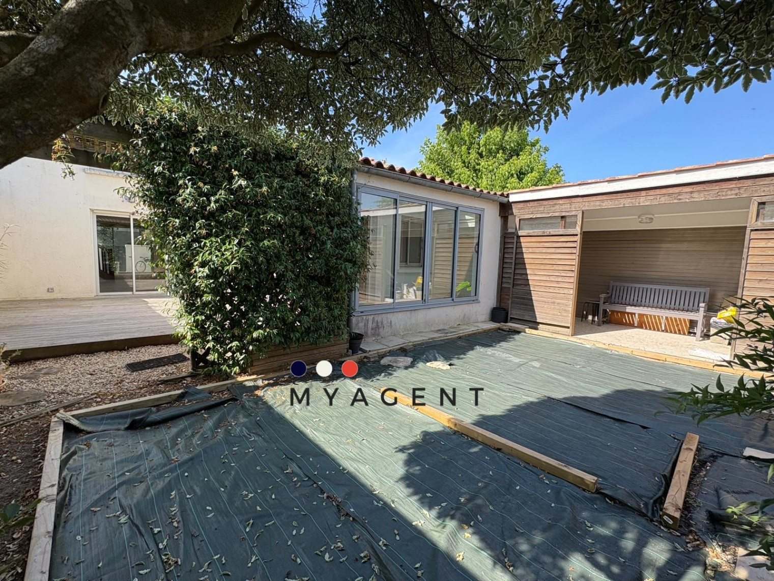 Surface totale du terrain : environ 268 mètres carrés, avec deux terrasses aménageables et arborées.
